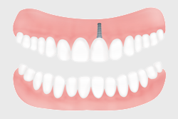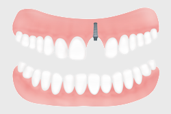 Manchmal fehlt nur ein einzelner Zahn, zum Beispiel ein Schneidezahn oder ein Seitenzahn. Die restlichen Zähne in dieser Zahnreihe im Kiefer sind alle vorhanden. Dann kann dieser fehlende Zahn durch ein einzelnes Implantat ersetzt werden. Wird eine Zahnlücke auf diese Weise geschlossen, müssen gesunde Nachbarzähne nicht beschliffen und überkront werden, wie das zum Beispiel bei einer normalen Brücke ohne Implantate gemacht werden muss.