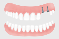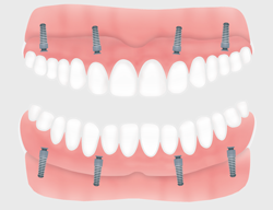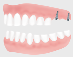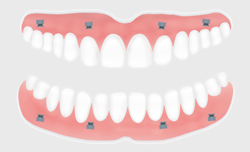Eine einfache Prothese, die nicht auf Implantaten festgemacht ist, hält in einem Kiefer ohne eigene Zähne oft nicht gut. Beim Kauen oder Sprechen kann sie locker werden, kippen oder klappern. Damit die Prothese sicher sitzt, ist es auch möglich, in einem Kiefer ohne Zähne eine Totalprothese anzufertigen, die auf Implantaten befestigt ist.